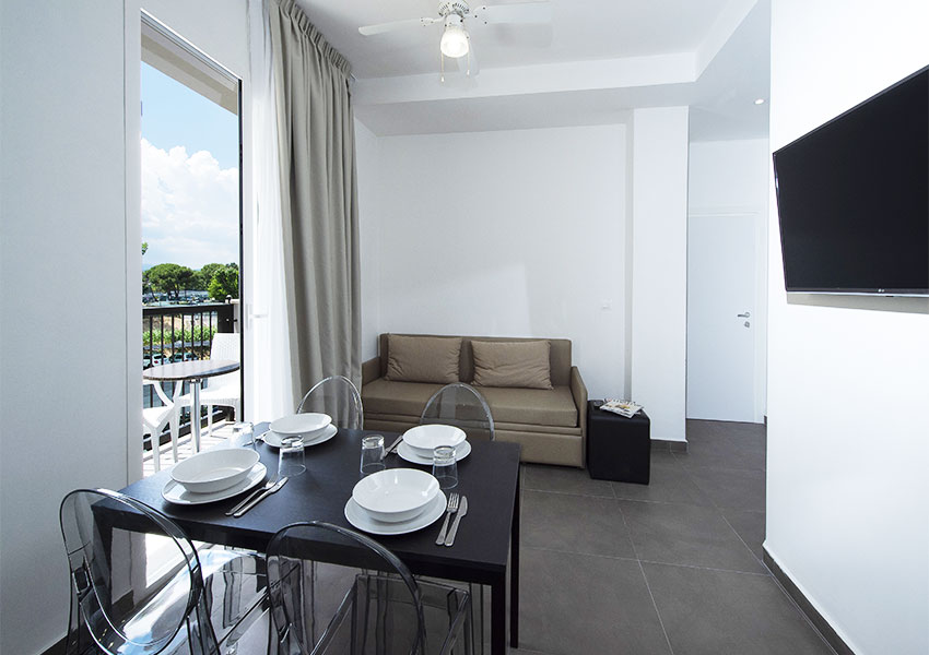Per le tue vacanze in appartamento disponiamo di 4 nuovissimi bilocali Comfort di 38 mq dotati di: